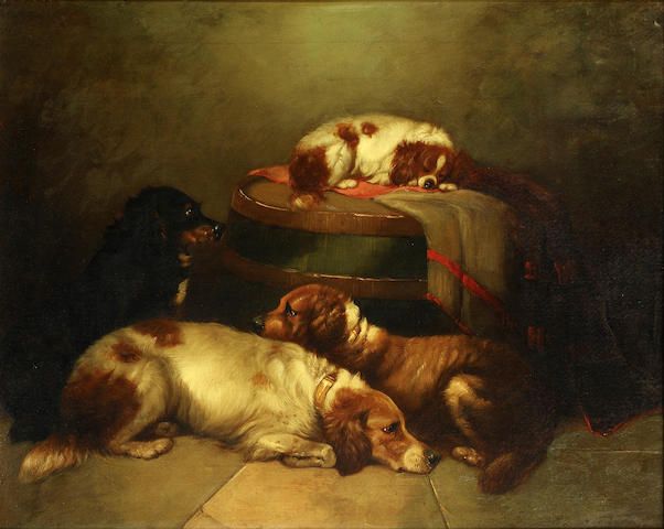 Four spaniels in an interior