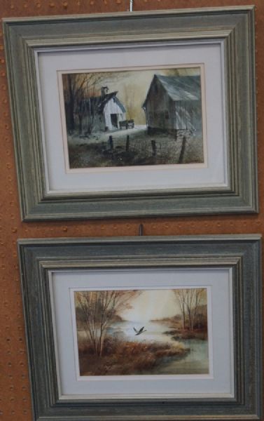 Goose Over Marsh, 2 Farm Buildings
