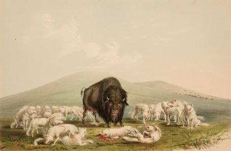 | North American Indian Portfolio Buffalo Hunt, White Wolves Attacking A Buffalo Bull (Plate 10) | |