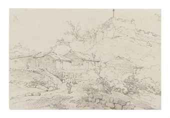 | A figure on a track below a citadel (illustrated); and A study of a Chinese fisherman, gamblers and two goats (recto) and Subsid | |