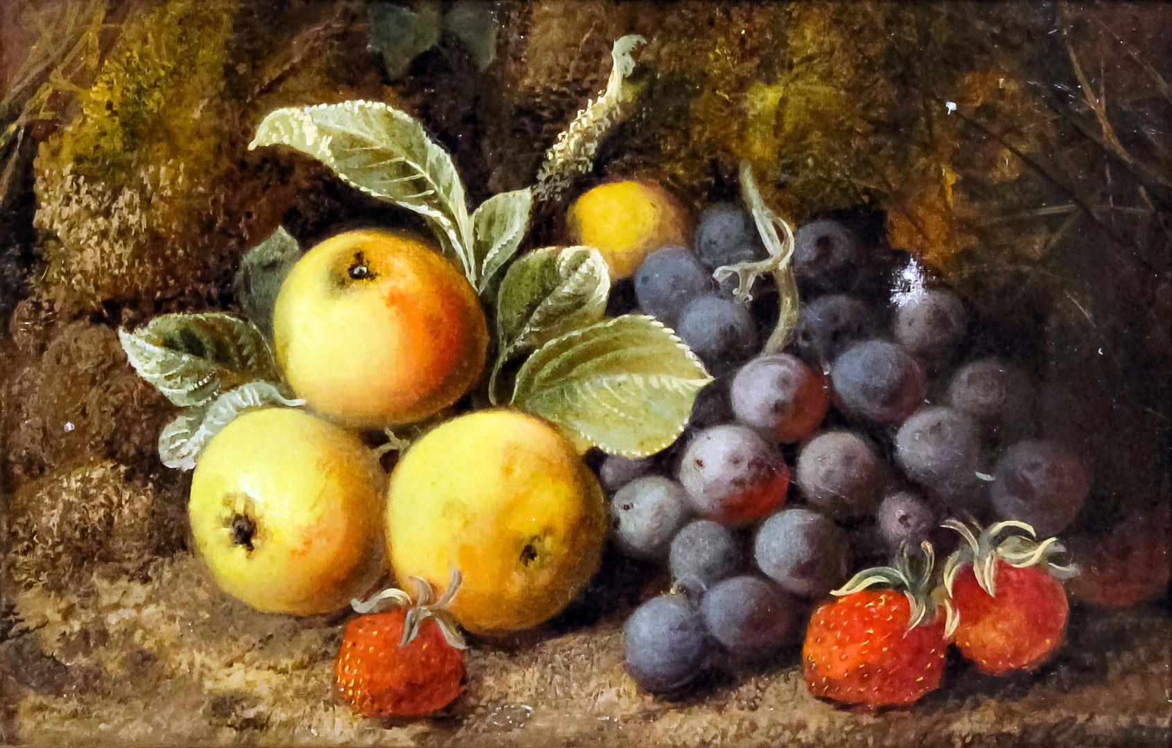 | Still lives - Birds nest with spring blossom and apples, grapes and strawberries | |