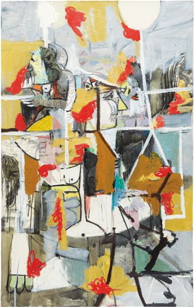 | Oil acrylic, colored pencil, chalk, paper on canvas | |