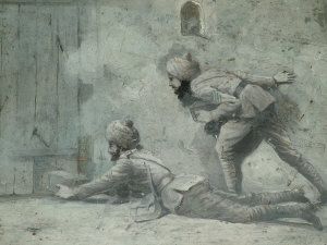 Indian soldiers laying A 'Petrd' at the gates
