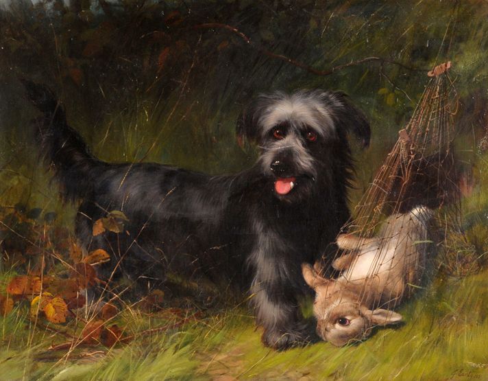 'ROSS' - LONG-HAIRED TERRIER WITH A RABBIT