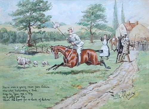 | There was a young man from Lahore who voted foxhunting a bore; says he, give me a dig at a jolly fat pig, that's the sport for u | |