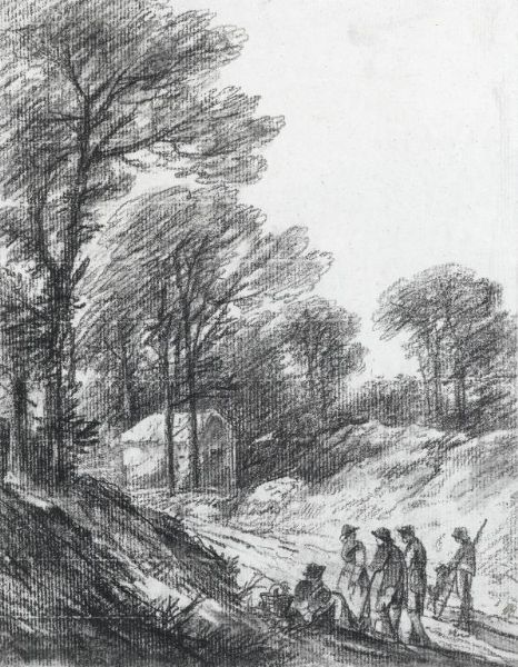 WOODED LANDSCAPE WITH FIVE FIGURES