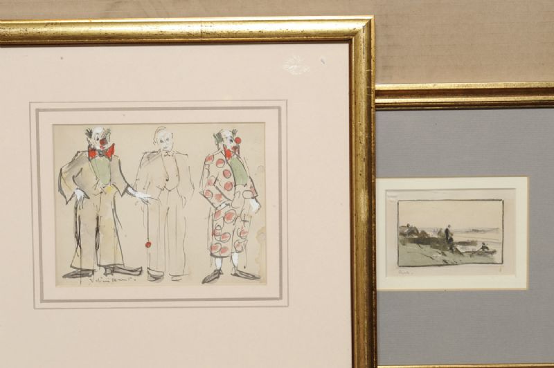 Pencil and watercolour, 2 items