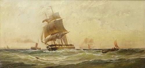 | Running down the Channel in a fair wind as she clears the stern of the ferry | |