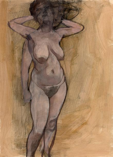 Femme nue debout, lors de 2 poses différentes, 1940. Au revers, étude de femme