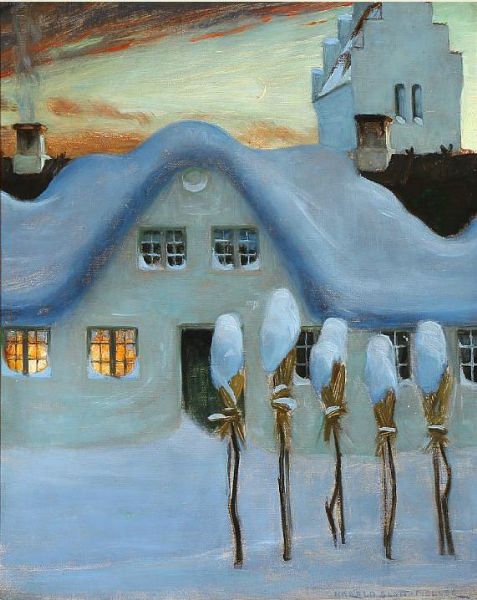 | Evening atmosphere in front of a vicarage, winter time. | |