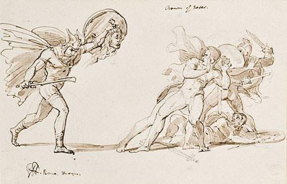 | Vainqueur brandissant la tête décapitée d'un chef ennemi pour mettre en déroute son armée | |