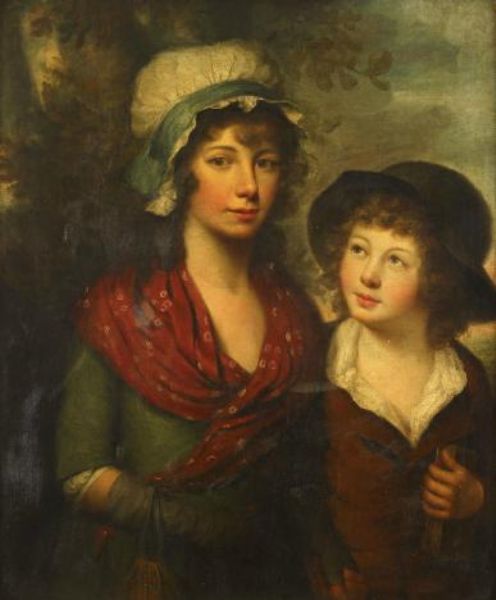 | THREE-QUARTER LENGTH PORTRAIT, OF A YOUNG WOMAN AND A BOY WITH LANDSCAPE IN THE DISTANCE | |