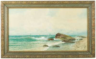 SEASCAPE WITH SAILBOATS IN THE DISTANCE