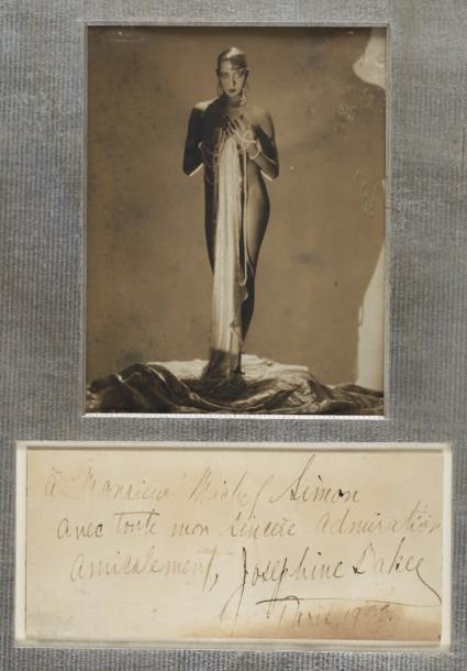 | Portrait de Josephine Baker accompagné d'une dédicace signée par Joséphine baker à Michel Simon | |
