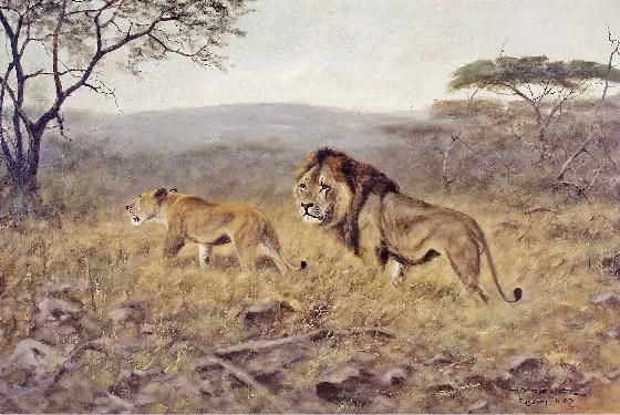 Ziehende Löwen" (Massaisteppe)