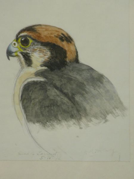| bird studies including four field sketches in one frame, head study of a Lannerette and sketch of a Dickenson's falcon | |