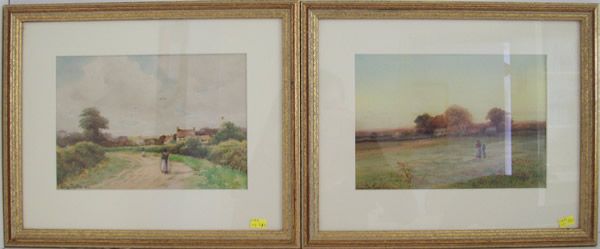 Bucolic country scenes with farm workers and a path