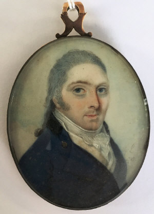 | A portrait miniature of a gentleman in a blue jacket & white cravat | |
