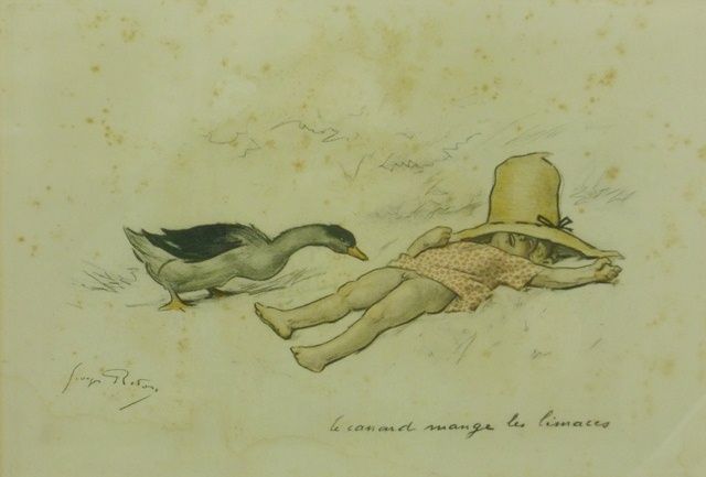 Le Canard mange les Limaces, a Child asleep under a hat with a goose looking on