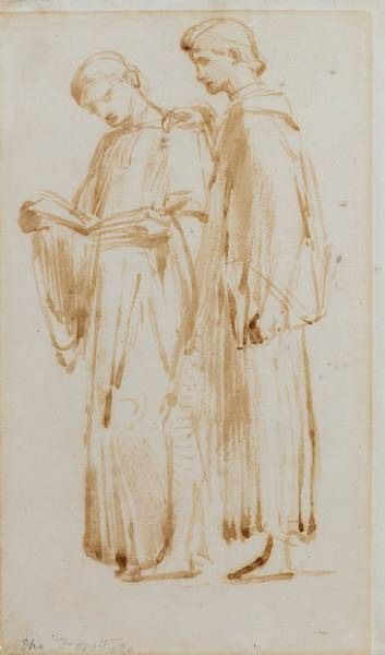 Study of two standing Acolytes; Study of female figures