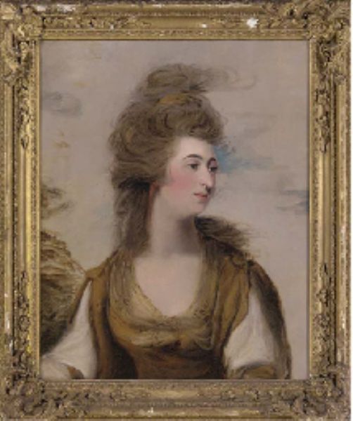 | Portrait of a Mrs Henry Hope, bust-length, in a yellow dress with white sleeves, in a landscape | |