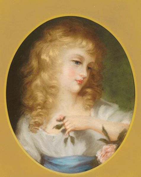 Portrait eines reizenden blonden Mädchens mit Rosenblüten
