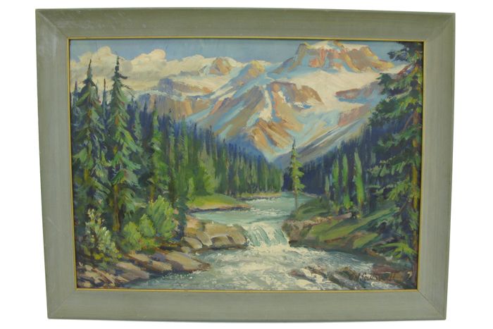 | Landscape with rushing stream in the Canadian Rocky Mountains. | |