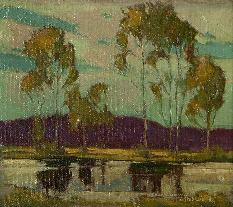 ''Murray's Lake'', landscape with eucalyptus trees and lake