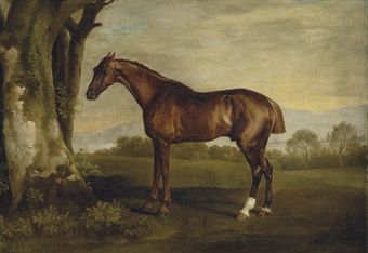 | Antinoüs, a chestnut racehorse, in a landscape | |
