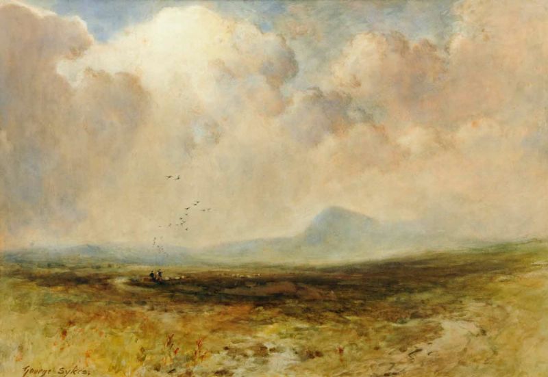 figures and sheep in moorland landscape
