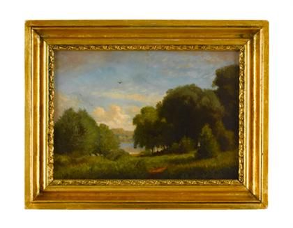 Landscape with figure beside a lake