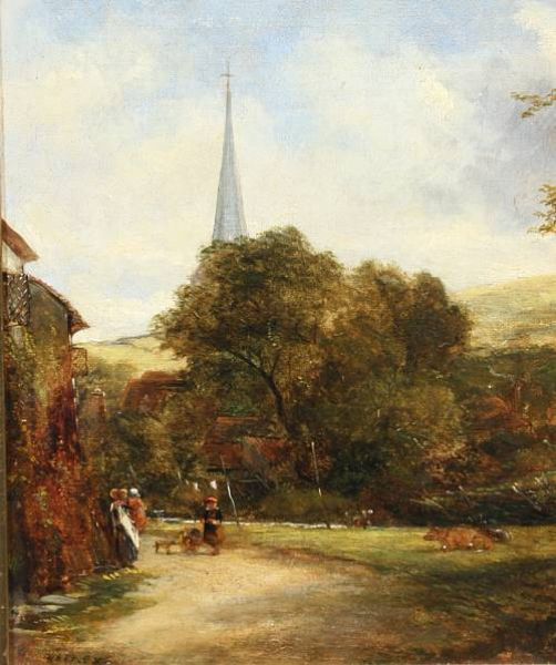 Figures on a village lane