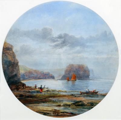 Staithes, Fisherfolk below Penny Nab at Sunset