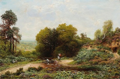 Landscape with children playing near a brook. Signed G. W. Mote. Oil on canvas. 51×76.5 cm. | |