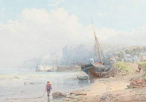 Saundersfoot, Tenby, with figure on the shore