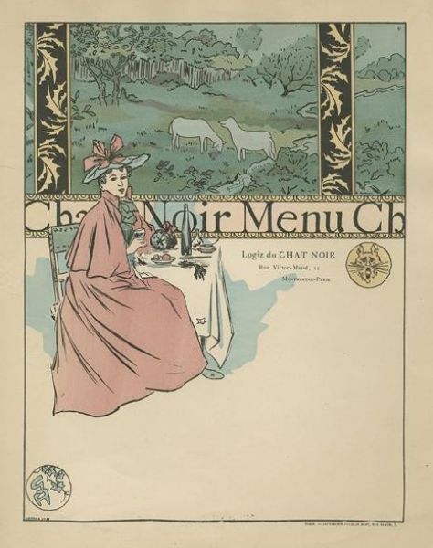Menu illustré pour le Logiz du Chat Noir , vers 1899
