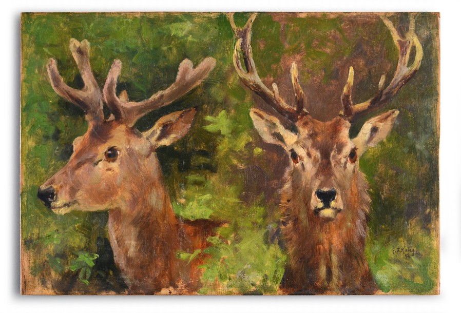 Etude de deux têtes de cerfs