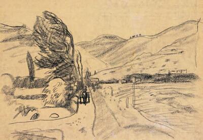 | Charrette sur un chemin, Rochemaure (Ardèche) | |