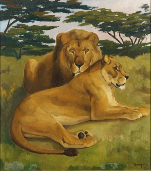 LION ET LIONNE COUCHÉS