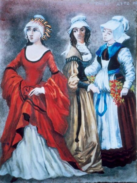 3 maquettes originales pour des Maîtres Chanteurs (opéra de Wagner - acte III)