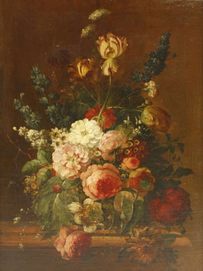 | STILL LIFE OF FLOWERS ON A STONE LEDGE | |