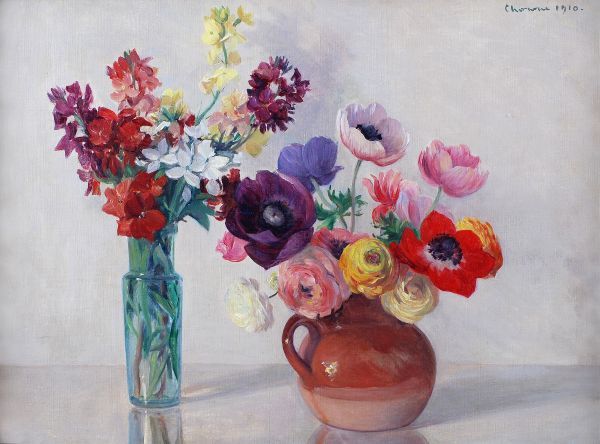 Vase and jug with flowers