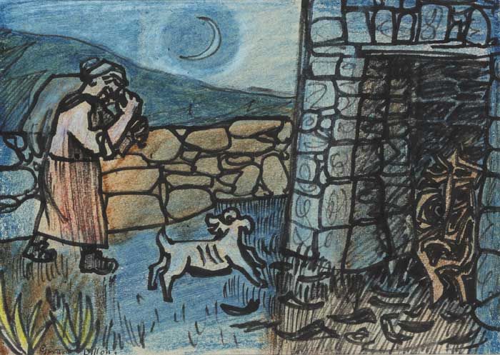 GOING HOME (FIGURE WITH DOG BY MOONLIGHT)