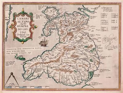 Landkarte von Wales bezeichnet "Cambriae Typus Auctore Humfredo Lhuydo ..."