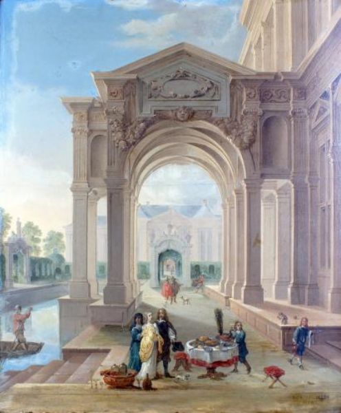 | Un déjeuner sous les arcades d'un palais architecturé | |