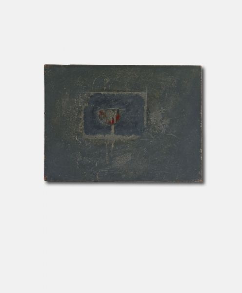 Oil collaged with metall element, on masonite