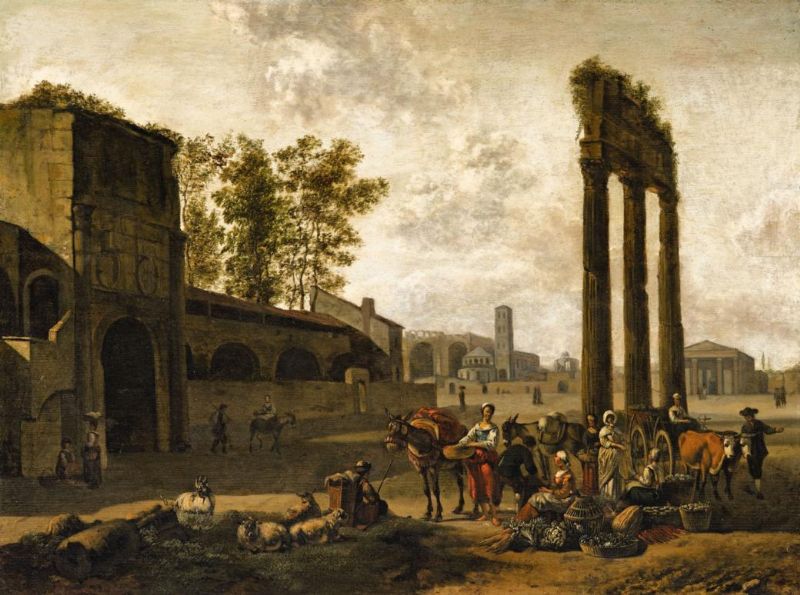 Architektur-Capriccio mit Marktszene