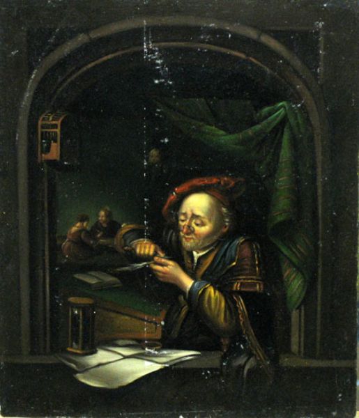 A SCHOLAR SHARPENING HIS QUILL PEN AT A WINDOW