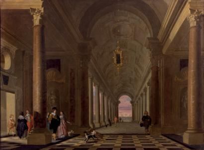 | Vue d'une galerie imaginaire animée de personnages | |