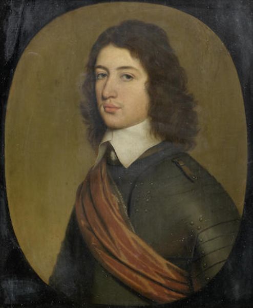 | Portrait of a gentleman, traditionally identified as Sir Harry Vane the Younger, half-length, in armour with a red sash, within | |